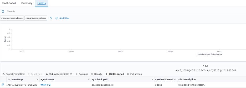 B4: Kiểm tra cảnh báo bằng cách chọn Endpoint Security > File Integrity Monitoring
