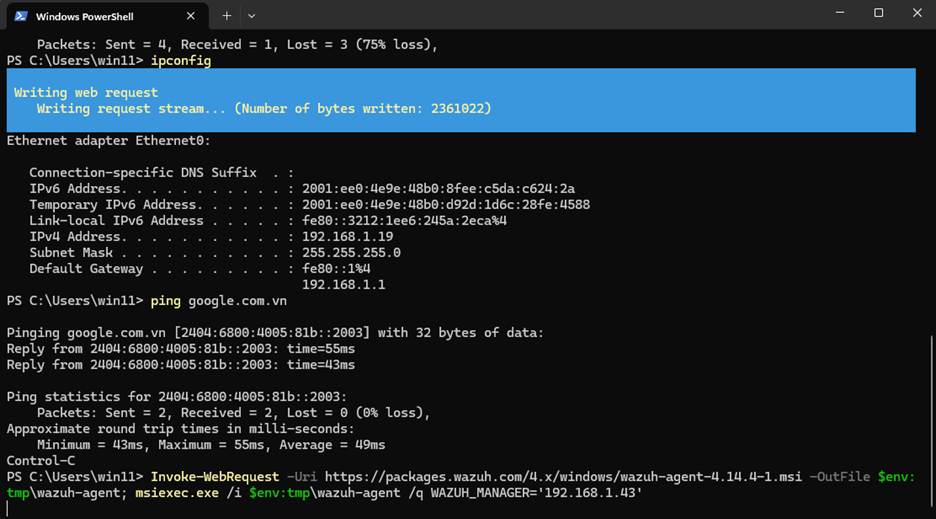 • Cài đặt Wazuh Agent trên endpoint.