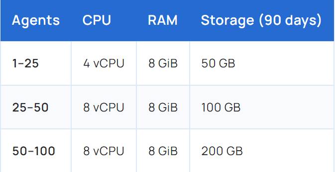 Yêu cầu phần cứng phụ thuộc rất nhiều vào số lượng máy trạm và máy chủ được bảo vệ. Con số này giúp ước tính lượng dữ liệu sẽ được phân tích cũng như số lượng cảnh báo bảo mật sẽ được lưu trữ và lập chỉ mục.